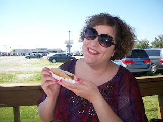 Tuesday the day I had greatly anticipated finally came! Emboz and I took Baby Madi to her first trip to Dog N Suds!!! She was pretty excited to sit at the picnic table like a big girl! It was a beautiful day to sit outside!!